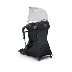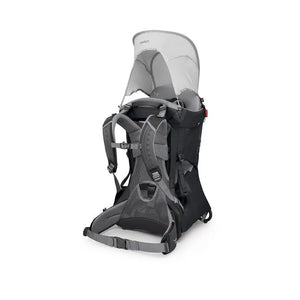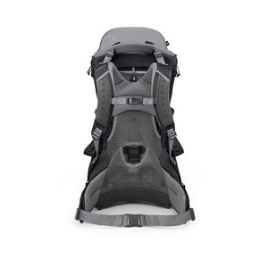 • Suspension: Full wrap aluminum tubing frame provides lightweight but stable heavy load carry. Collapsible foot bar provides greater maneuverability while the child carrier is on. Patented locking hinges and rotating side arms allow the frame to fold down for travel and storage.