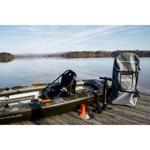 The iATAK 110 drop stitch kayak delivers the conveniences of inflatable kayaks with the rigidity and performance of hardshell kayaks, through patented fishbone technology optimizing speed and tracking to get to your fishing spot. With the aluminum accessory rail and integrated universal accessory mounts, you can customize and place your kayak fishing accessories at an easy reach. Enjoy the comfort of the ErgoBoost Seat, when folded turns into a booster seat making it easy to sit or stand while casting. When the day is done, towel dry, deflate , and roll up into the included backpack for easy transport and storage.