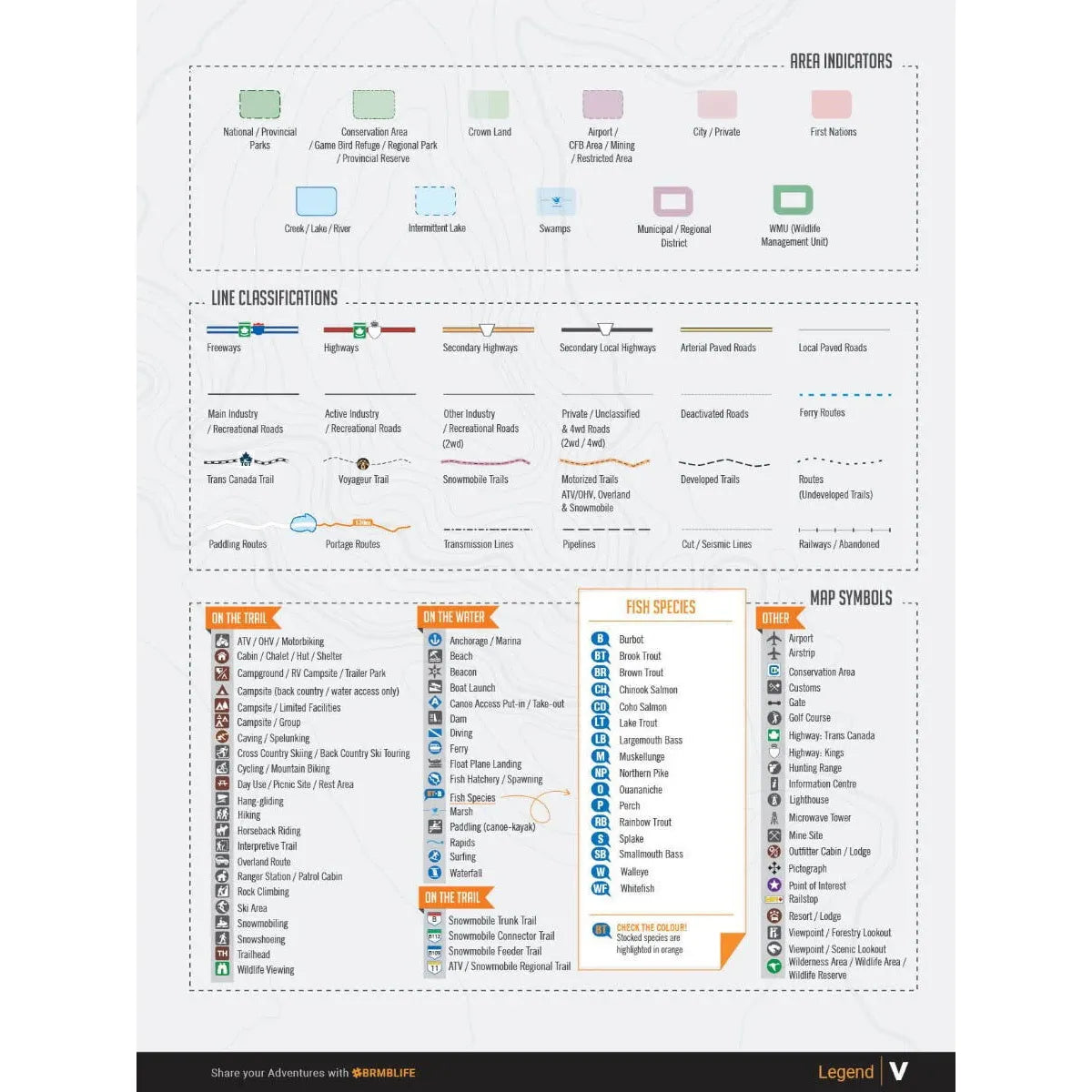 - Features Included: Highways, Logging Roads, Crown Land, Land and Water Features, Parks, Adventure Points of Interest, Campgrounds, Hiking Trails, Motorized Trails, Paddling Routes, Hunting and Fishing Areas, Winter Recreation and more