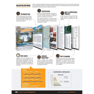 The printed version of the mapbook comes in the convenient 21.5 x 28 cm (8.5 x 11 inch) mapbook format with a heavy-duty spiral-bound cover. The 216 page book includes 92 maps starting at 1:250,000 scale, along with 10 Outdoor Adventure sections, a Service Provider Directory, Map and Adventure Index, Trip Planning tools and more. With over 145,000 kilometres of roads to view including the most complete logging and industrial road coverage available, the books are ideal for navigating on road trips and planning from home.