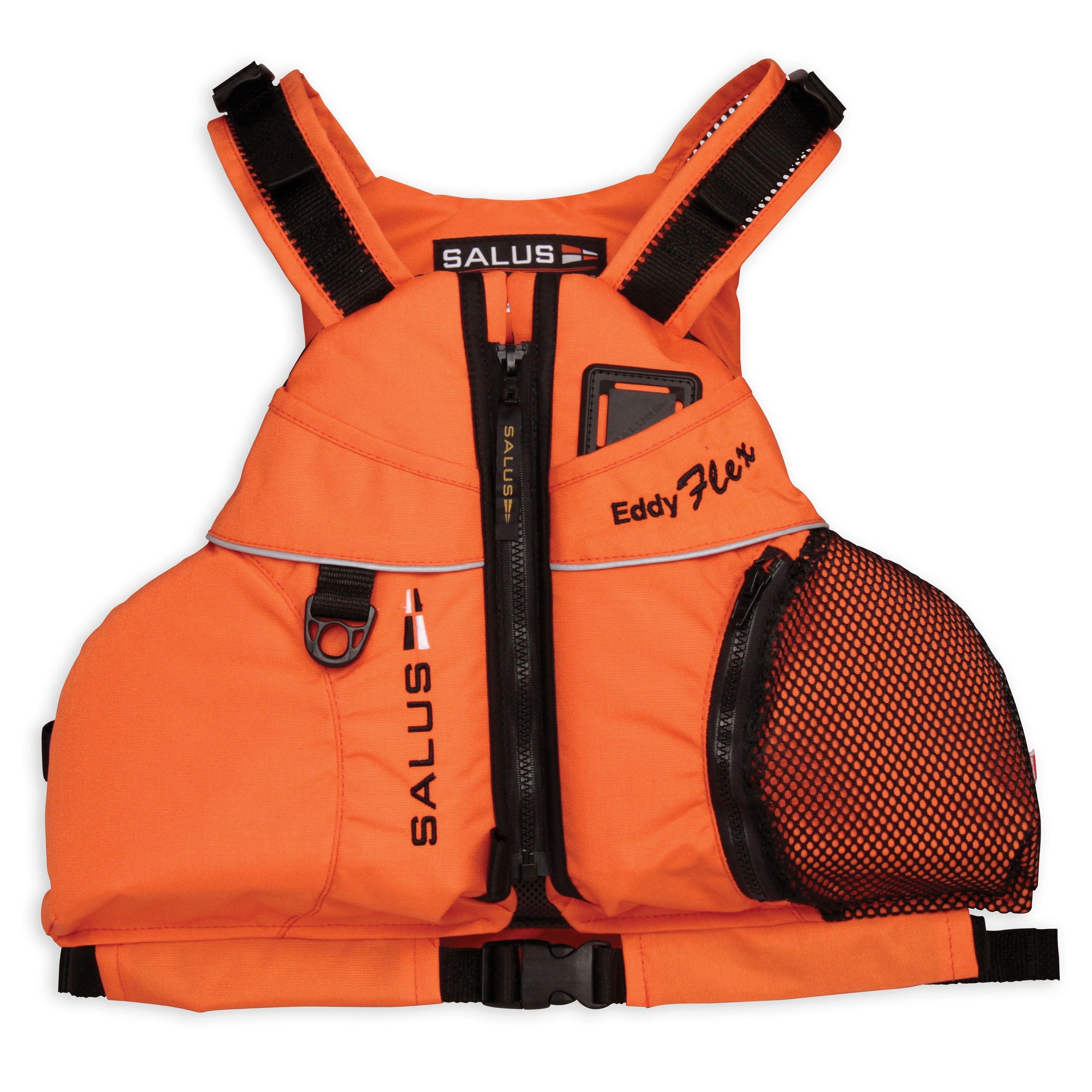 • Our most popular vest, the Salus Eddy-Flex offers added contouring back foam, tapered shoulders, Dry-Lex back lining, pull-forward adjustments and an easy-grab zipper tab, making it a welcome companion to any water adventure. The addition of unisex styling, contoured fit, easy-on front zipper design, 3M reflective trim, rounded edges and soft-foam construction put the Eddy-flex in a league of high-end vests with streamlined features.
