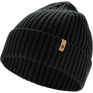Rib-knitted hat made from a soft and warm blend of traceable ZQ merino wool and organic cotton, making it the perfect choice for milder weather. Övik 365 hat has a wide folded edge and a small leather label on the side.