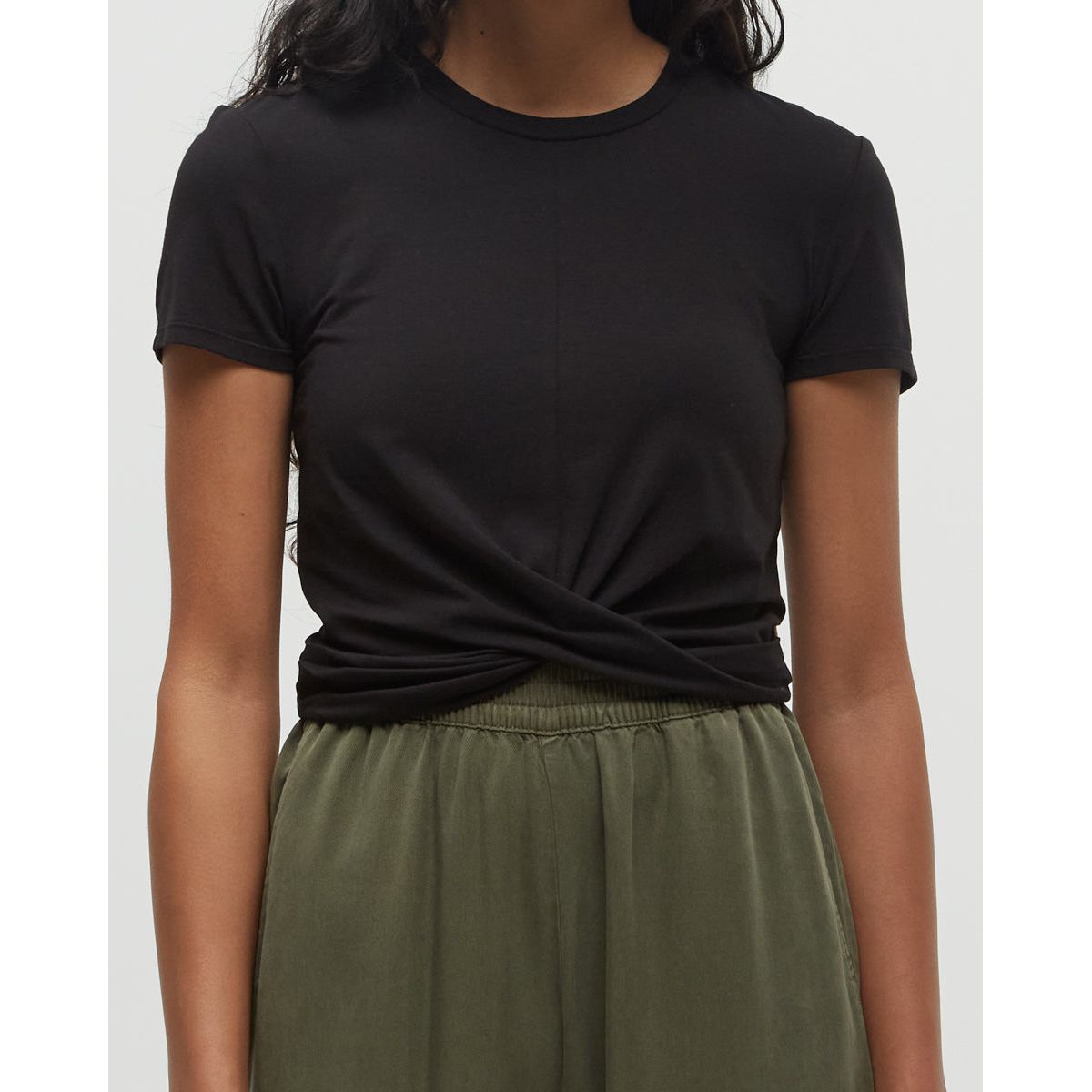 An everyday t-shirt with a twist — literally. This stretchy twist-front tee is crafted from silky soft EcoTech Jersey that keeps you cool on the move and our planet cool for the future.
