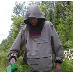 Where The Original Bug Shirt Elite Edition touches your skin light weight, but extremely densely woven fabric is used. This is what stops the mosquitoes from being able to bite you. Where the shirt hangs away from your skin black no-see-um mesh is used – this keeps out all manner of tiny biters, lets the air through, and provides excellent visibility through the face screen.The zippered hood can be easily thrown back, and fits over a baseball cap or hard hat. Wrist closures seal the sleeves against biting insect intrusion. A drawstring at the waist with bow cord lock provides a positive seal at the bottom edge. The entire shirt folds into its own zippered pocket, and travels easily on a belt clip.