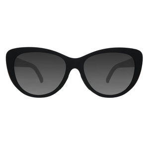These black cat-eye sunglasses with black non-reflective lenses & light gold accents are giving fashion icon. Won't slip or bounce when vogueing down the catwalk or the sidewalk.