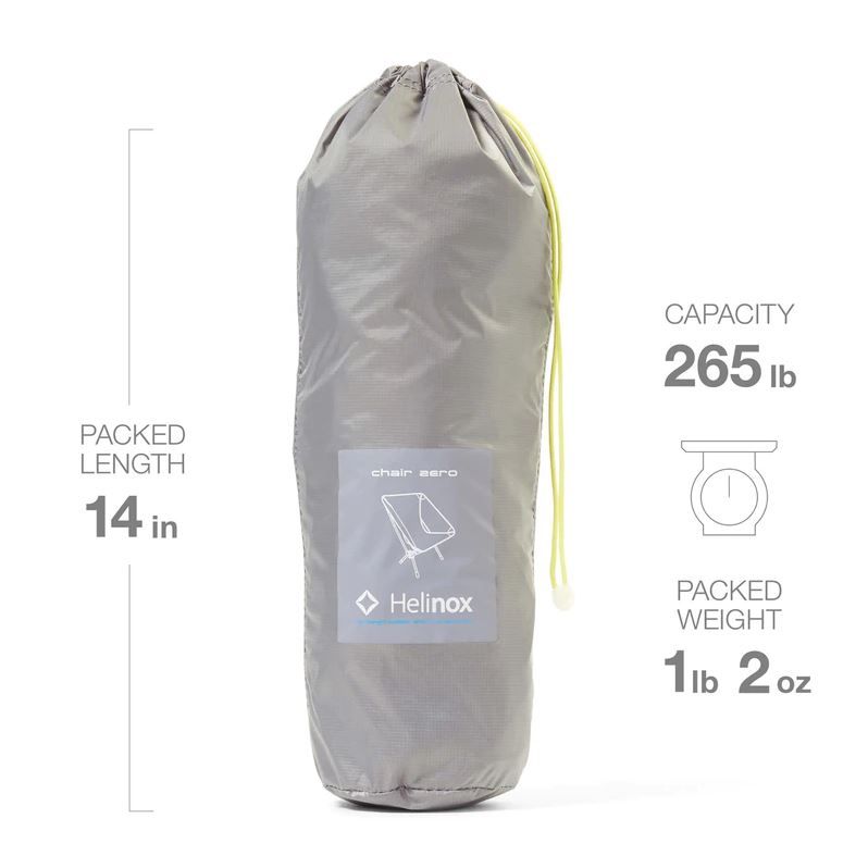 Helinox's lightest and most packable chair, Chair Zero delivers outstanding comfort, strength, and support for just 17 ounces.
