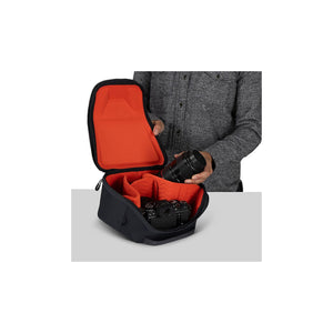Turn almost any Osprey pack into a photo bag with a durable, protective Camera Cube. Small fits most packs over 18L. Molded EVA tops and adjustable dividers to keep bodies and lenses securely in place. A padded web grab handle provides an easy carry while loops for an optional shoulder strap add versatility.